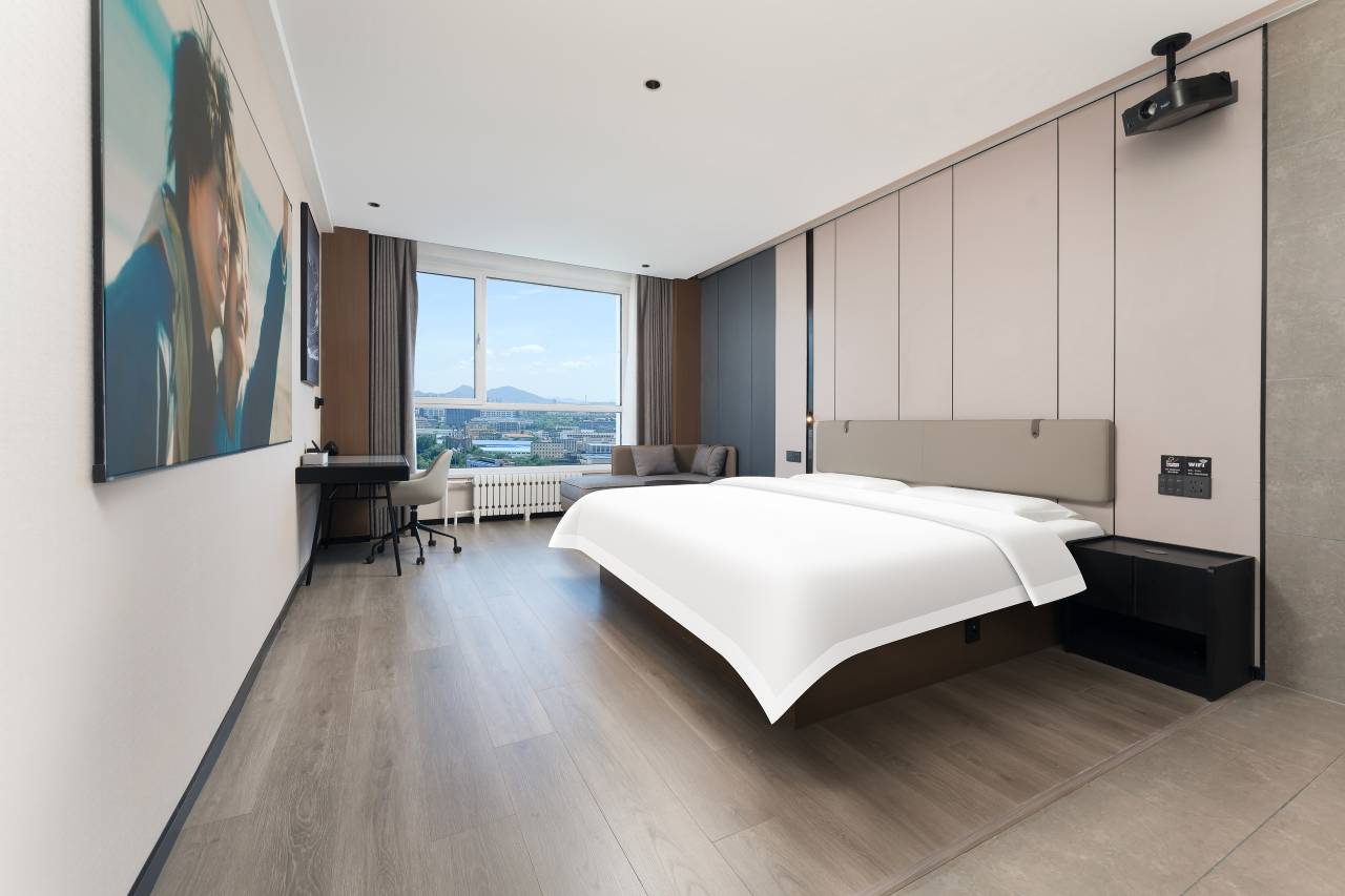 本酒店位于烟台市八角湾大学城,会展中心,工业园区,周边景区有水上乐园、张裕卡斯特酒庄、西夫拉姆庄园、磁山温泉、蓬莱阁等。 酒店设置免,费停车场,本店所有客房智能小度语音管家所有设施,电动窗帘、灯光、空调电视等无需手动开关!震撼出品影院房(百寸巨幕),现代茶艺房,家庭套房等!房间宽敞明亮,设施新颖,高空景观,落地窗视野极好,简约而不简单,期待您的光临!