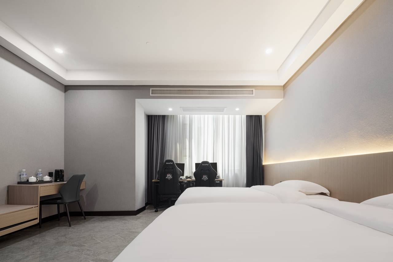 本店坐落于中国江苏泗阳来安街道经济开发区北京东路26号,我们是一家专注于为玩家提供优质电竞体验与舒适住宿服务的主题酒店。无论是途经此地的游戏旅人,还是本地寻求酣畅对决的开黑团队,这里都是您理想的电竞栖息地。 【地理位置优越,出行游玩便捷】酒店地处开发区核心地段,交通便利,让您的旅程省心省力,距泗阳火车站约15分钟车程,高速通达。【贴心酒店服务,入住无忧】我们致力于提供便捷周到的服务,全面提升您的入住体验:免費停车为您解决停车顾虑;免費行李寄存,让您在入住前后都能灵活安排时间;自助洗衣,让您长住或旅途劳顿后,轻松焕新衣装。 【专业电竞装备,为胜利加持】全店客房统一搭载高性能电竞设备,为您的每一场战斗提供坚实后盾:性能核心搭载第13代英特尔i5处理器与NVIDIA RTX 5060显卡,辅以32G大内存,强悍性能轻松应对各类3A大作与多任务处理,确保运行流畅无阻。视觉画面采用HKC 27英寸直面电竞屏,拥有2K分辨率与180Hz高刷新率,画面清晰锐利,动态表现丝滑流畅,助您洞察先机。全能外设套装,全系配备傲风电竞椅,提供舒适作战姿态;搭配罗技电竞鼠标与西伯利亚电竞耳机及键盘,从操控到听感,为您打造各方位沉浸式电竞环境。 在这里,每一次操作都得到精准响应,每一刻快乐都得以尽情释放。本店已准备就绪,期待与您一同创造辉煌战绩!