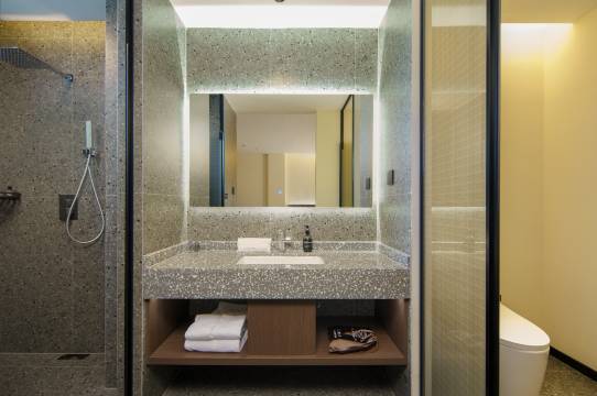 服务周到贴心,位置也好找,前台大厅有免费的热饮冬天来一杯真的很暖心,酒店装修风格大气简约,房间环境干净整齐,也没有什么异味,房间内的浴室和卫生间采用了干湿分离的方式,浴室的空间很大洗着澡也不会了头晕,酒店有停车场停车非常方便,从酒店后面出去就是停车场,酒店周边有夜市美食,出来游玩真的很推荐!