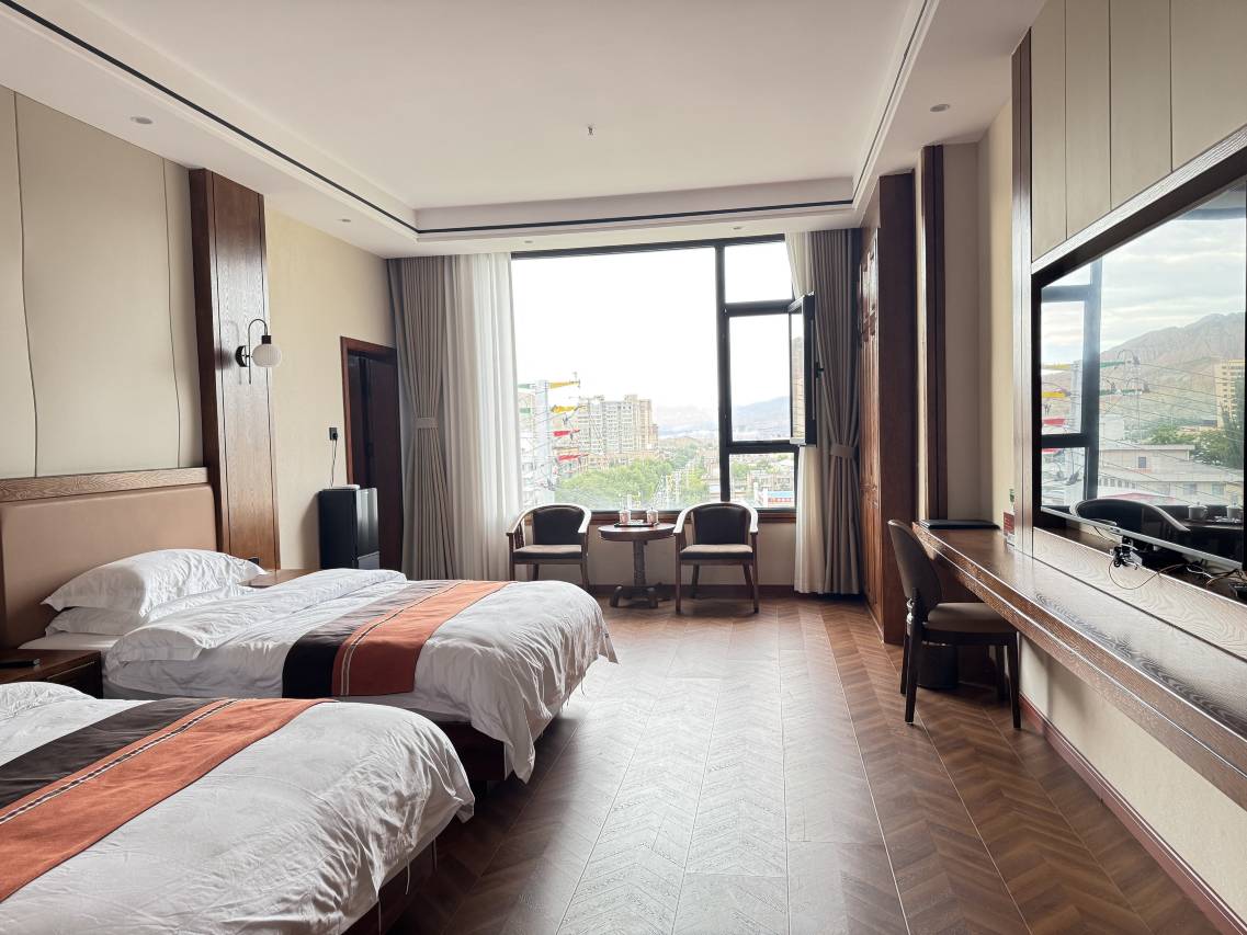 服务态度很好,有落地窗,旁边有超市,交通便利。房间干净无异味,房间空间大,我们一家四口也不觉得拥挤,前台服务热情高效,性价比拉满。入住体验满分!卫生细节拉满,有直饮水,服务全程在线,宾至如归的感觉,强烈推荐!