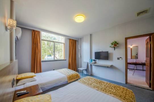 宾馆总建筑面积为三千多平方米,宽敞舒适的客房内有坐卧两用沙发、鸭绒床品,还有浴缸,不用担心孩子们不喜欢淋浴了,而且在浴缸内就可以玩水。图书馆及温泉也是孩子们可以体验的场所。方便快捷的宽带设施供您上网。