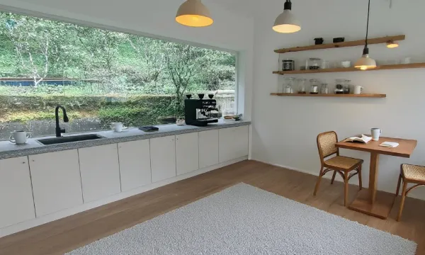 今年新开的民宿,设计感很强,二楼的大床房间真是满足我们一家三口,晚上中间娃要360转圈的需求(不会踢到大人了)。除湿机,饮水机,自动抽水马桶。连牙刷牙膏都是用心准备的,质量很赞。