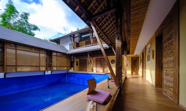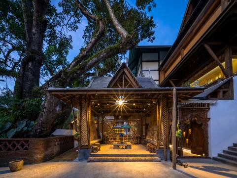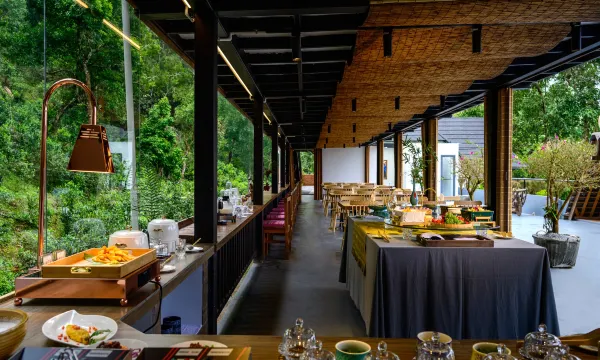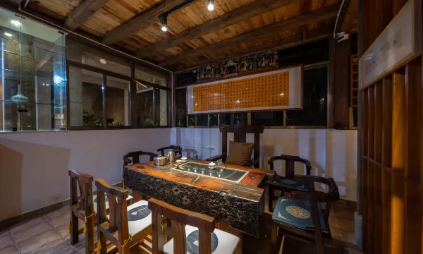 客栈位于云南景迈山古茶林核心区,海拔1360米,是一家集隐奢度假、民族文化与自然生态为一体的豪华客栈。 |吃在风景里 「观云海空中花园餐厅」依古茶林而建,揽尽云海与茶山,主打茶山菜、民族风味宴及茶餐烧烤。食材源于古茶园与本地山野,傣族厨师以非遗技法烹饪,茶香入馔,品美食更享绝景。 |住在茶林旁 「茶林秘境」被千年古茶林环抱,大榕树、石斛、开花藤蔓等热带植被簇拥其间。生态客房均配备私人露台或落地玻璃窗,推窗即见茶林云海,独享野奢与静谧。 |行在无忧间 「茶园漫行」提供专属租车服务与景区接送,车辆可直达客栈停车场,并配有向导伴游,古茶林徒步、旅拍摄影随心定制,纵览秘境无惧崎岖。 |乐在火塘边 「火塘文化中心」定期组织篝火唱跳与围炉夜话,茶厂体验区可亲手采摘、炒制古树茶;「野奢露台」支持定制星空晚宴、团建餐趴,传统与现代娱乐交融。 |游在秘境中 「茶园栈道」直通日出云海观景台,徒步探秘千年古茶林,伴游向导讲述茶祖传说;「傣族摄影工坊」提供民族服饰旅拍,定格雨林诗意光影。 |购在雅集处 「茶咖名品屋」展售千年古树茶、手冲咖啡及非遗文创;「民族风物馆」集结傣族银饰、傣锦私藏,茶器、茶饼礼盒彰显匠艺传承。 客栈涵盖六大功能区:前厅(火塘屋、茶咖厅)、客房(茶林庭院房、全景套房)、餐饮(云海餐厅、烧烤区)、娱乐(茶厂、露天剧场)、景观(茶园栈道、古树观景台)及服务(停车场、管家中心),以全维度奢配设施,缔造云端隐逸之旅。