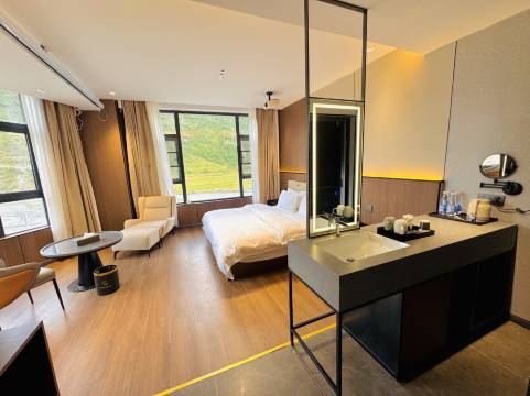 房间设施很新,地暖非常给力,进去就暖哄哄的,洗漱台很大,对女生非常友好,适合化妆洗漱