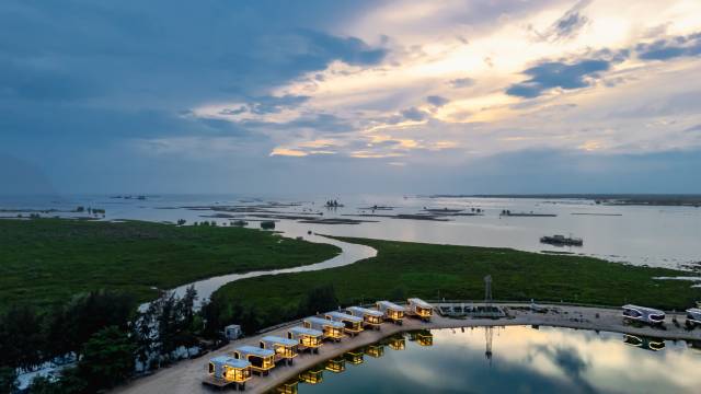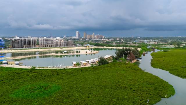 就在海丝首港景区里面,玩的很晚,从景区回来很方便,入住那天晚上可能赶上冷空气刮大风。感觉好像就我们一家。270度视野不错,但我们能看见外面,外面也能看见里面。要能改成单向玻璃会更好。边上就是红树林,景色很不错!