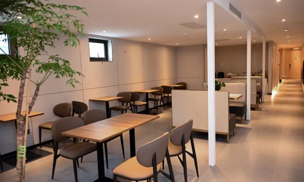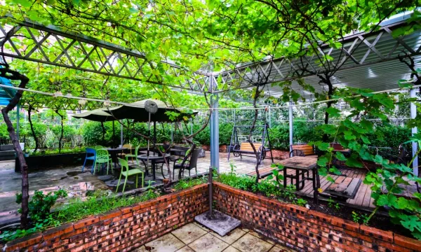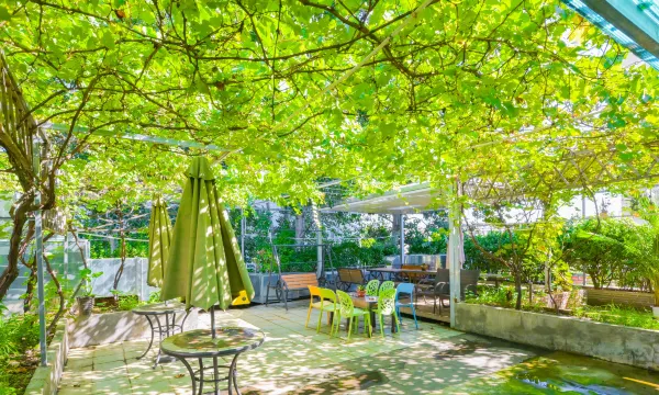 酒店的大厅让我印象很深,设计得特别漂亮,房间装修和全季酒店的风格有些相似,大气又不失格调。大厅里还有咖啡座,点上一杯咖啡坐一会儿,不管是等人聊天,看书还是歇脚都很惬意。最惊喜的是四楼的露天花园,傍晚上去吹吹风,看看周边的景致,瞬间能卸下一天的疲惫,太加分了!