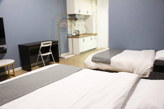 房间非常好!我们三个成年人住也完全ok!而且联系店家我们带了一只狗狗,老板也非常好!跟我们说完全没问题的,三人一狗在这里度过了非常舒适的一晚~图片是早上下楼遛狗看见停车场堆的雪人 可爱捏