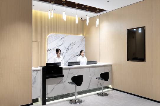 前台热情燕语迎,待客礼貌笑脸生