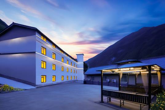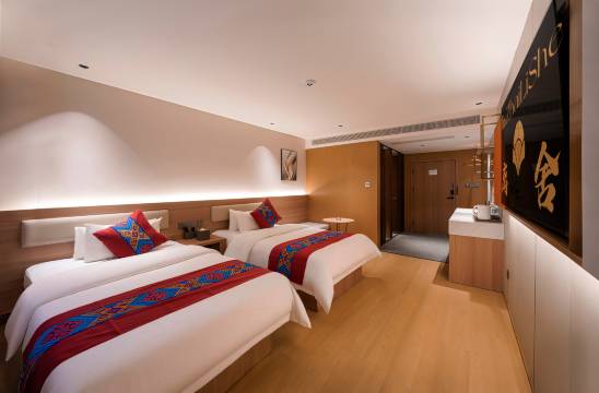不愧是携程评分高达4.9的民宿,在我住的两天里,二十八个房间都是客满。老板和员工待人真诚热情,每次出入都能看到老板和员工的笑脸,住店客人确实有宾至如归的感觉。房间设施均按全季酒店的标准配置,房间隔音好,设施全,服务周到。除了有车送景区外,老板还为客人着想,推荐附近各种美食,并不从中谋利。我们到的当天晚上,老板问清我们想吃什么后,就给附近的餐厅打电话,一会儿餐厅老板开着车把我们接了过去。在那里吃了一顿藏式牦牛汤锅,还获得**秒杀价,两个人一共花了118,就品尝了正宗的藏餐。