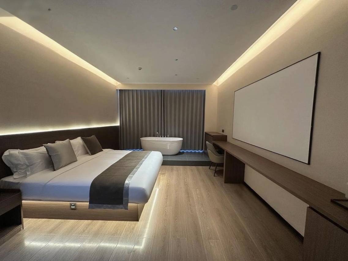 原本只是一次普通的出差,却被这家酒店狠狠治愈了。一推开门,高级感的木质调空间瞬间抚平疲惫,巨幕投影、智能卫浴的配置,处处透着用心。全屋智能“小艾同学”,现代酒店装修风格.躺在床上,脚下的氛围灯温柔得像星光,窗外是山林与建筑的交融,恍惚间以为住进了艺术展馆。卫浴的智能马桶、精致的洗护用品,连拖鞋都带着专属质感,细节控真的会爱惨!在这里,每一处设计都藏着巧思,每一份服务都暖到心底。真心觉得,这不仅是住一晚的酒店,更是能让人卸下所有防备的温柔港湾。必须五星锁死,下次来还住这!