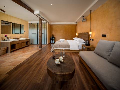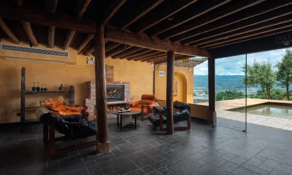 舒野集楼下温泉泡池,楼上卧室