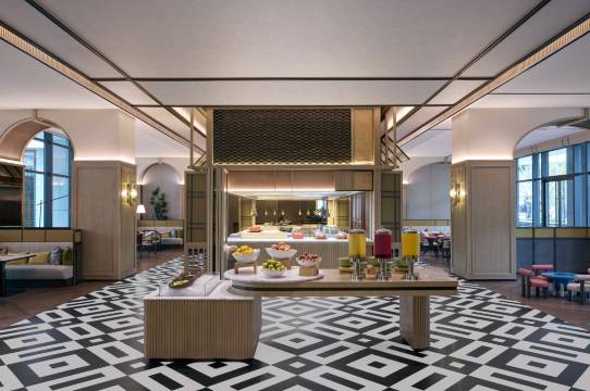 餐厅:早餐自助和单点午餐都在一楼的自助餐厅,早餐内容丰富,黑金牛角包很好吃,是住过的为数不多早餐面条和面包质量都很好的餐厅;没有专门的中餐厅,但是单点的黄鱼面很好吃,餐厅服务员小姐姐Rebecca很可爱,会逗宝宝笑,还送了一块小蛋糕给宝宝;
