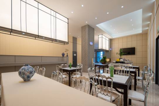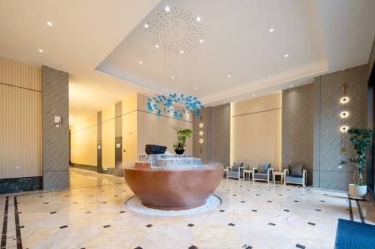 住这家酒店真的挺舒服,大堂布置得有格调,还有流水和绿植看着特别养眼。休息区的椅子坐着很软和,24小时都能喝到现磨咖啡和鲜榨果汁,太方便了。自助简餐的菜味道很家常,量也足,整体感觉性价比很高,下次还会来住!