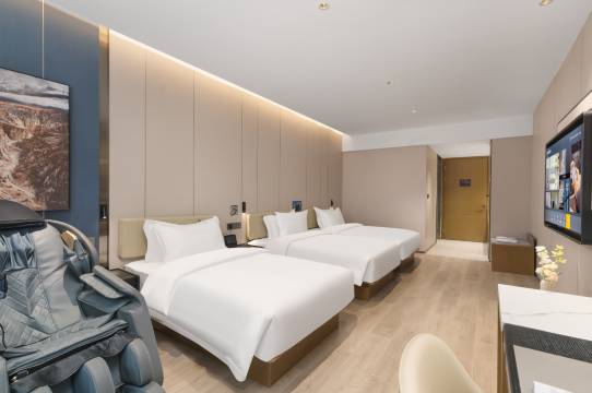 酒店卫生无可挑剔,房间一尘不染,床品带着清香。卫生细节做得特别到位,浴室无异味,地板光脚踩都放心。工作人员热情又专业,主动帮忙提拉行李,强烈推荐。