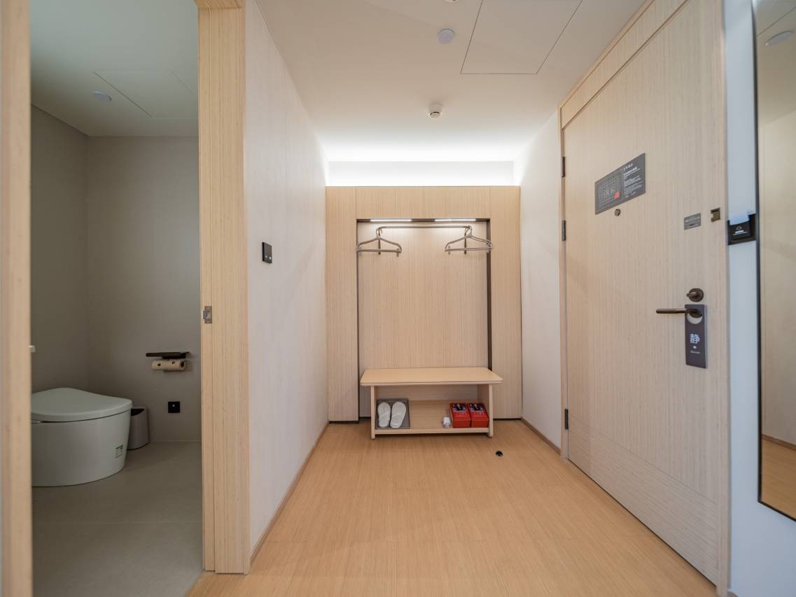 房间原木色调简约雅致,公区通透舒适;房间干净整洁,智能配置齐全,床垫与枕头软硬适中,隔音优秀。早餐新鲜可口,前台高效热情,细节拉满。门口就有云巴交通非常便捷,商旅入住体验感一流,安心又稳妥。