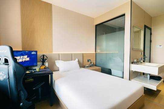 电竞酒店始终秉持“让电竞更尽兴,让住宿更舒心”的理念。这里是电竞爱好者的专属领地,每一间客房都配备了行业的硬件设备:搭载新一代处理器的高性能主机、高刷新率的专业电竞显示器、电竞专用外设键鼠套装,符合人体工学设计的电竞椅,网络专线,全方面满足职业级竞技需求。本店位于唐山市路北区文化路与煤医道交叉路口,近唐山站,万达,交通极为便利。酒店内客房房型多样化,同时配有早餐厅、会议室,大型停车场。酒店全体员工竭诚欢迎您的莅临与品鉴。