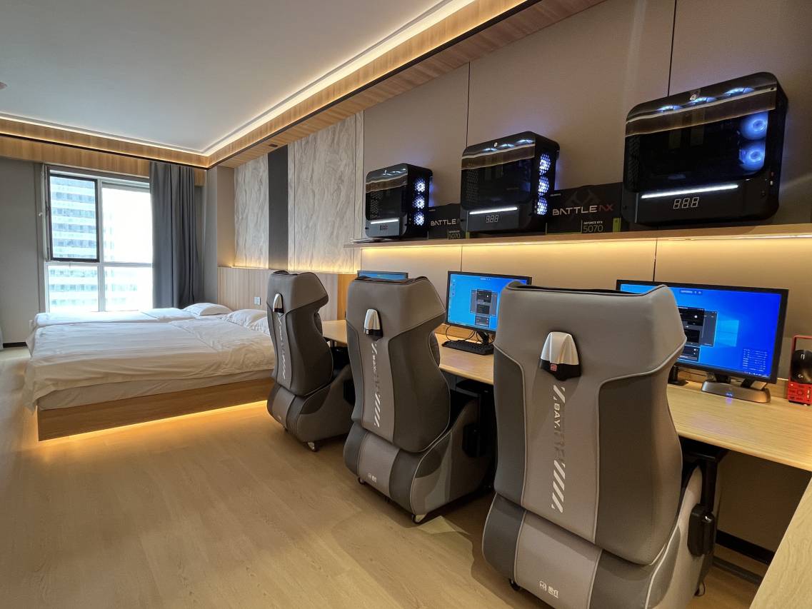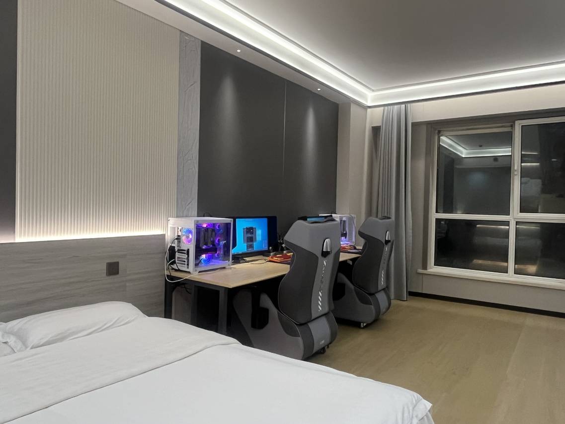 房间干净整洁!带朋友去玩也不会感觉尴尬而且没有味道,床很软睡觉很舒服,打完游戏累了躺一会超舒服的。电脑打游戏不卡顿,是我没想到的鼠标键盘也很干净,屏幕也很大很干净,每次眼朋友开黑都要去这里,推荐大家