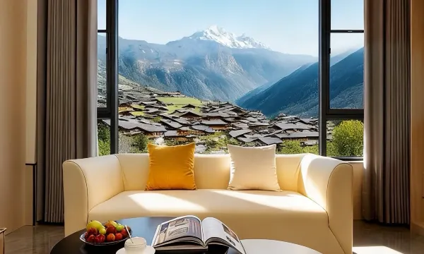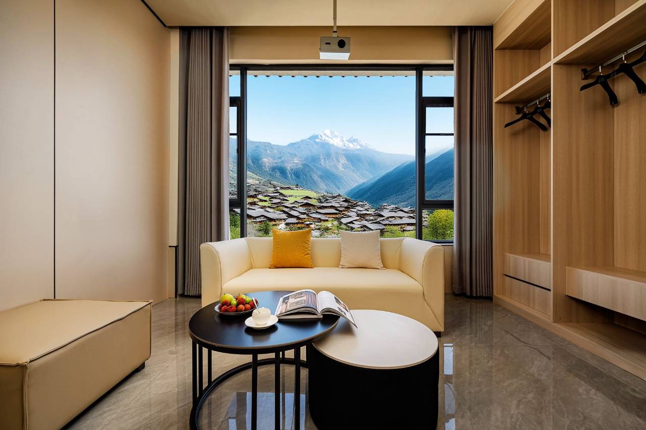 这次住宿太满意了!观景台视角一流,雪山全景尽收眼底,美到失语。房间干净整洁,空间宽敞,设施齐全好用。床很舒服,热水充足,住着很惬意。服务人员态度很好,热情又专业,有求必应。酒店安静舒适,环境优美,很适合放松。在观景台看日出日落,氛围感拉满。干净、舒服、风景好,性价比超高,来雪山玩一定要住这家!