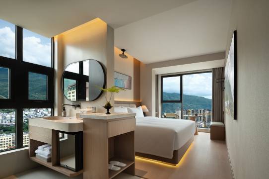 看到评价第一名订的,到茂县考试,这个地理位置去哪里都很方便,前台小姐姐服务态度超好,很nice。洗手间马桶智能,洗漱干湿分离,窗帘智能,阳光山景超美好,就是楼下破房子有些煞风景,也是看到其他游客这样评价,真真实实,确确实实,但不影响住的舒心。下次还来,必须五星好评!