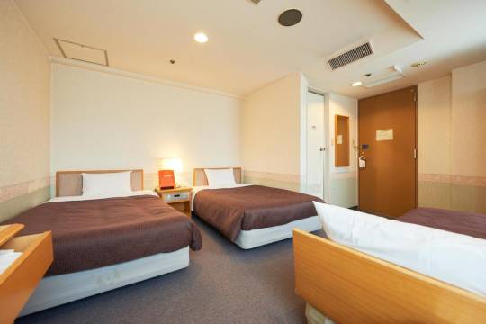 设施:日式普通商务酒店,双人床比较小,倒是便于打开旅行箱,洗手盆冷热水是独立的,较麻烦。窗户不能打开。