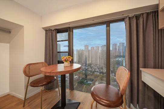 客厅装修大气窗户外风景很好,卫生间干净整洁住着很舒服,附近吃饭也方便,下次来还选这