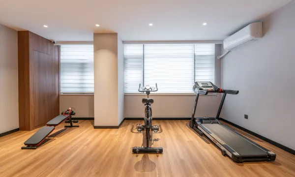 设施上,我觉得达不到4星级的标准,健身房和洗衣房在一起,只有简单的3个设备。淋浴房底部漏水,一洗澡水漫金山。洗浴用品和吹风机挺好用的。
