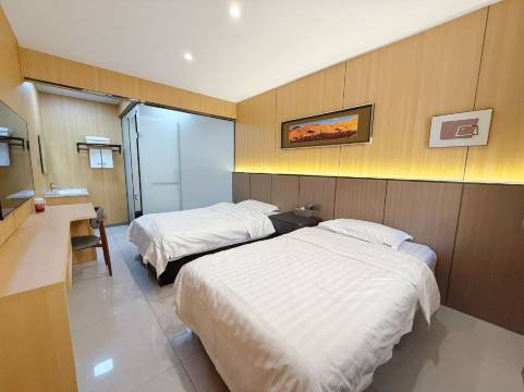 一共住了两晚体验非常好!老板豪爽热情,房间宽敞明亮,设施齐全、很新,热水、电视、空调都有,马桶还是智能的,比我住过的有些酒店好太多了。房间很大,小孩在房间里面跑来跑去玩的很开心。酒店的位置也很优越,交通便利,周边好吃的、好玩的很多。下次再来嘉峪关,一定再来住!