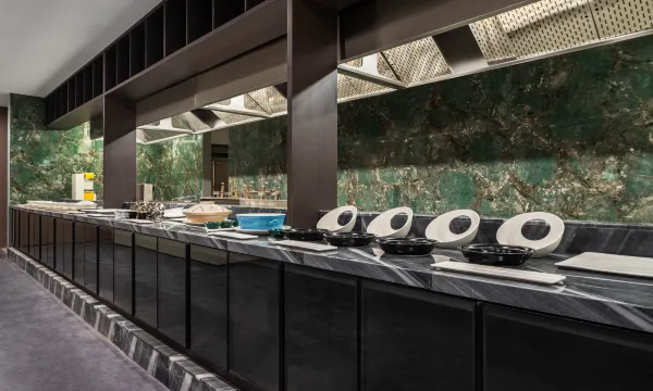 酒店特别好,因为接站迟到了一会儿,所以给我们升级了公馆房型,还送了一套伴手礼。床特别软,水管也特别高级,干湿分离做得很好,投影仪也非常的清晰,房间非常大,地板很干净,床品软软的香香的。但是隔音略微有点不好,需要改进一下。早餐也非常好吃,品类很多。旁边就是绿地新都会,离万象城也特别近,非常好,送外卖的机器人也很快。