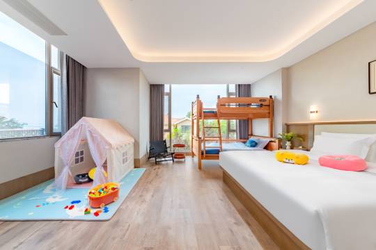 一次惬意的旅行,客房卫生洁净,智能控制便捷。庭院景观精致,意想不到的无边际泳池给孩子带来了无限欢乐。