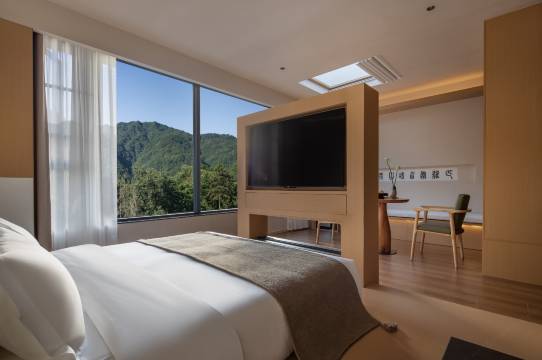 写字,整个人都平静下来。星空房也很有特色,晚上看着星星入睡,早上被阳光温柔唤醒。酒店的高铁站接送服务让旅程更加轻松,司机师傅态度很好。房间里的茶具和茶叶品质不错,泡一壶茶看山景,简直不要太惬意!