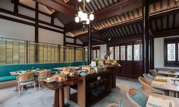 服务与体验更是层层惊喜。管家会主动帮忙拎行李,迷你吧的饮料随意畅饮,还能预约非遗花茶体验 —— 看传承人演绎 “轻花多窨” 的古法,亲手窨制一罐带着栀子香的绿茶,午后再在亭台水榭间品份苏式茶点,配着碧螺春的清香,简直是把江南慢生活过成了诗。