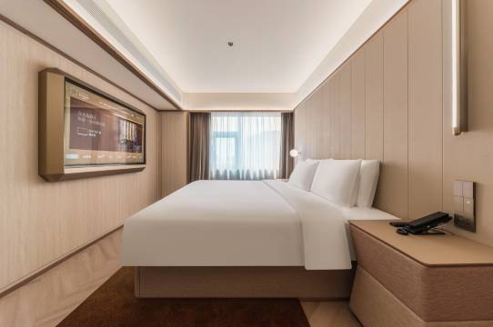 非常惊喜的一家酒店,前台工作人员很热情进门就听到打招呼,办理入住也很顺畅,还帮我拿行李太贴心了。房间整体都很干净,还有免费赠饮很棒!酒店总的来说很现代化,机器人送东西避免陌生人来敲门的尴尬,智能马桶,干湿分离,太爱啦,有机会还会选择水晶酒店!