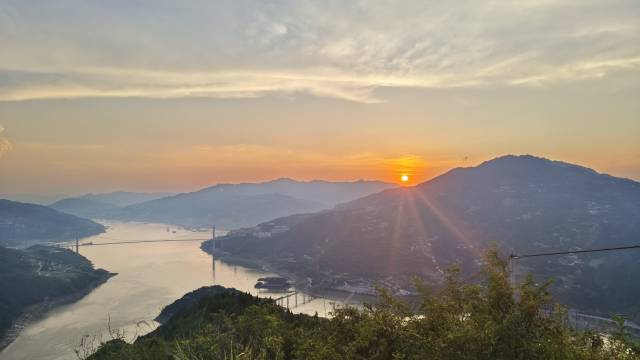 位置得天独厚,可俯瞰整个瞿塘峡,还可欣赏长江落日圆,很是壮观。更没想到的是,在这三峡之巅,竟然有很好的柏油路可以一路开车上来。