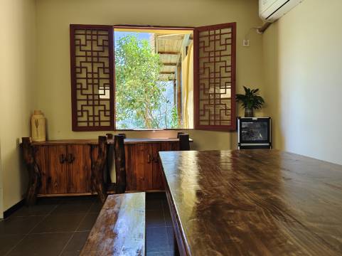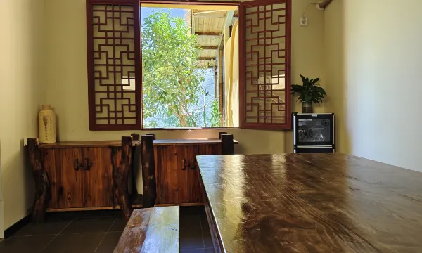 环境非常好,店内的布置也很有设计感,有很有用树枝做的画,看的出来老板是一个很有想法的人,最让我喜欢的是他们有一个书房,里面有很多有意思的书都可以借阅,并且书房里面准备了茶具和笔墨纸砚,都是可以用的。房间的视野也非常好,躺着就能欣赏到风景。