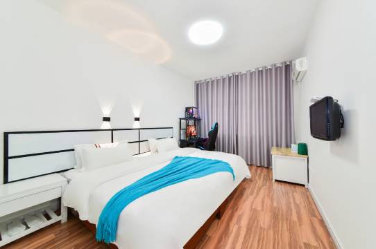 酒店卫生干净整洁,房间很宽敞,特别是电脑的配置很高,玩游戏一点不卡非常流畅,很是惊喜。周边出行也很方便,有机会还会再来,
