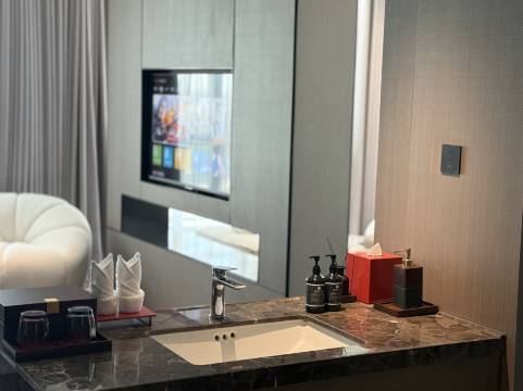 这家酒店的体验堪称完美!是新开的酒店,居然没有装修味,从踏入大堂的那一刻起,就能感受到高品质的细节与专业服务;房间也很干净还有免费的果盘;房间宽敞明亮,床铺非常柔软很喜欢,设施也是齐全布局精致,让我仿佛置身于家的温暖氛围,前台的工作人员态度热情,始终主动解决需求,服务细致到让人有“宾至如归”的感觉。