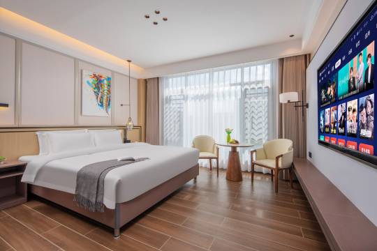 酒店环境不错,房间更惊喜,比之前住过的宽敞不少,床也舒服,空调、热水也都给力。最绝的是有天然温泉私汤,泡在汤池里,一天的疲惫都泡没了。老板还不错,聊起来才知道,旁边就是水上乐园,可惜娃上学了没带在身边,不然肯定乐疯。周围除了莽山,还有条网红打卡街,随便拍张照都超赞。