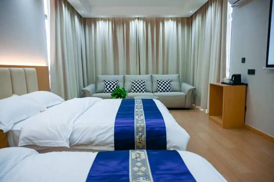 春节出游,回程路上实在太堵,才临时打主意订的房,不得不说太超乎预料的满意。房间很大,都可以做成两个标间了,配的沙发都可以睡一个人,全屋智能,干净卫生,还配备有坚果投影,可以躺床上享受3D环绕。卫生间除了配备基本洗漱用品,还准备了一次性毛巾和浴巾(免费),床上用品柔软舒适。隔音效果也好,听不到外面走动的声音,值得大力推荐!!