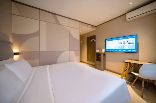 地理位置好,距离火车站十分钟,办理入住前台服务也不错,卫生打扫的阿姨也很主动,酒店安全做的也很到位,自己的房卡刷电梯只能去自己的楼层,外卖有机器人配送避免陌生人上楼