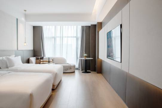 这次住喜程酒店行政港湾双床房真的很满意,房间全景落地窗视野很开阔,晚上摩天轮夜景也很好看。房间配套设施齐全,床很舒服,热水足,卫生干净,隔音也不错。还有健身,洗衣房,停车方便。整体来说性价比高,住得很舒服。