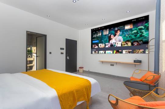 房间很干净,很大,床也很大,卫生间也很干净,投影很大也很清晰,一个人住定错房间了,老板还免费升级,服务特别好,设施很齐全,还有厨房,可以买海鲜回来自己做,非常方便,很推荐!!!!!特别是老板的服务,真的很好,很推荐