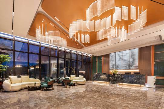 酒店的大堂宽敞明亮,布置得非常大气,且各区域指示明确有条理;