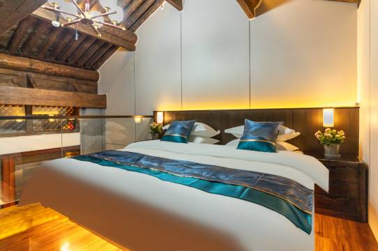 一家四位我们入住了木梁顶家庭房loft复室家庭房,房间漂亮,配有一次性毛巾浴巾!酒店位置很好,就在景区里面,到那都方便。入住酒店有回家的感觉,房间整个舒适,设施,卫生,环境都不错 。真心建议住二个晚上以上!老板人很好,给我们讲了游玩路线!避坑指南。