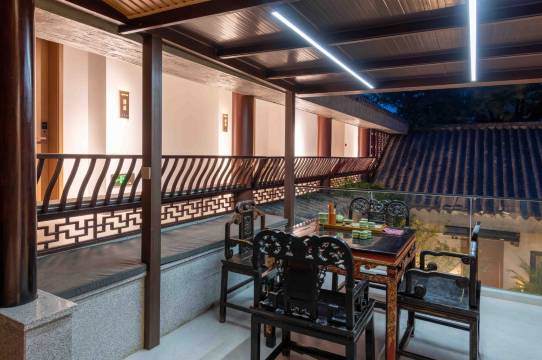 这里环境非常好 都是古榕树 房间干净大气,主要是床特别舒服。服务简直超标。非常推荐! 菜品上的也很快, 在水边喝茶是一种享受。