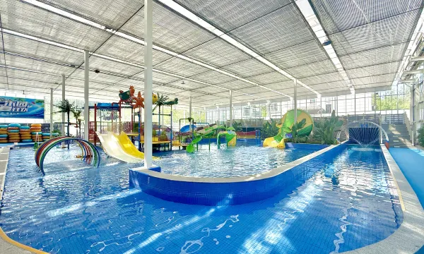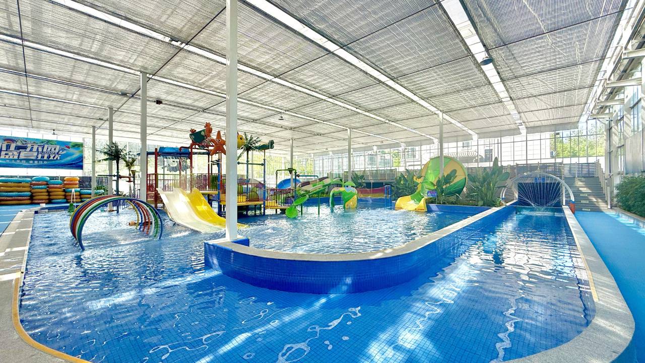 房间很惊喜,小朋友高兴坏了,不仅干净还有阳台小院。设施也很齐全,从儿童乐园到健身房,台球桌,乒乓球桌一应俱全,更惊喜的是游泳池,小朋友非要进去游一下,27°恒温水池,水质不错。