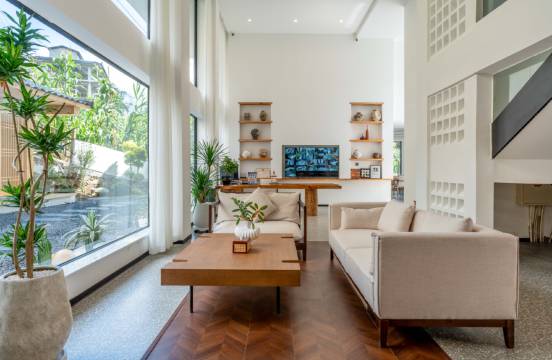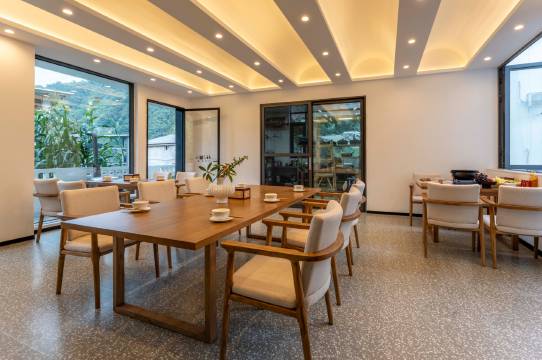 环境设计:民宿为现代极简风,超大落地窗,将雪山、森林美景框入画中,非常适合拍照打卡。