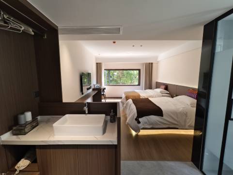 美宿位于嵩明县核心地标兰茂广场周边,非主干道上。有多个房间,小而美好。路边的树一年四季都郁郁葱葱的,推窗就是泼泼洒酒的绿,别有意境。酒店的整体设计和布置不追求簇新,以小众自然美学为灵感,注入侘寂风格,拥抱质朴,寂静与时光的痕迹,为旅人铸造一处安心的临时小家。室内没有繁复的装饰,都是实用且称手便捷的小物件。深知安眠之重,布草和床品都用的亲肤,柔软,透气的材质。软服务也是用心的,净眠小物袋很齐备。关注每一个细微需求,春山在望,心自安宁。期待与您的相遇。