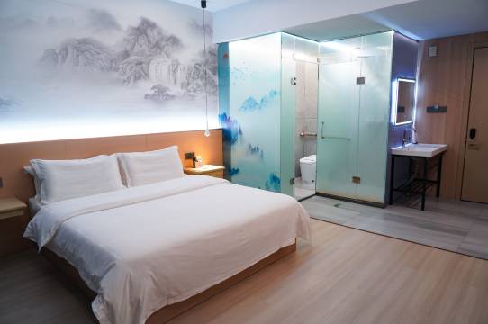 酒店的气氛特别好,特别温馨舒适,电动窗帘和智能马桶,服务员特别和善热情,打扫的特别干净卫生,薰衣草的枕头,光线柔和,房间宽敞,有我喜欢的红茶,绿茶!价格优美,推荐大家一起来吧!出差首选!