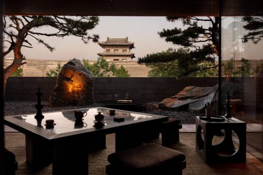 既下山·大同地处大同古城东南邑,设计团队集结GOA大象设计、CCD团队、谢柯尚壹扬团队、相上文象李万鸿团队,以现代设计手法融汇历史的壮阔想象,共同诠释这座北魏皇都的精神气韵。48间院落客房,每一间均拥有得天独厚的景观视野,一季一景。酒店配套北方皇族行宫标配的泳池,独特的“洞天别镜”设计让人仿佛置身天然洞窟,感受自然的治愈之力。餐厅通过恢弘华丽的空间与精致美味的餐食,营造出“食园画境,极乐宴乡”的生活场景。