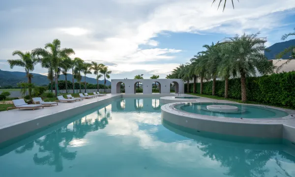 藏在村里的宝藏酒店,设计时尚,精致轻奢,比珠江新城的雅致更有味道。卫生干净整洁,床品舒适,睡眠超棒。能看白水寨山景,门前绿意满满,田园氛围治愈。对面就是咖啡店,遛娃休闲超惬意。服务贴心,酒店早餐精致好吃。公共温泉只有两个,跟泳池连一起,好在房间私汤够用又私密。周边吃饭方便,适合躺平度假、放松身心。它和传统酒店很不一样,安静有质感,很多巧思藏在细节里,真正的卖点,只有同频、懂生活的人才能get到,有机会再来。